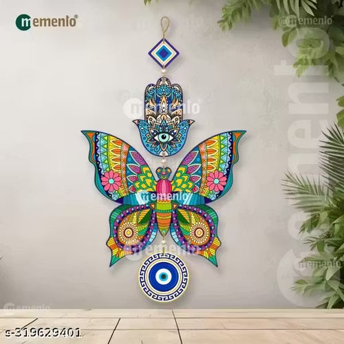 Memento New Trending Wooden Butterfly Evil Eye Hanging for House/Positive Vibes/Hamsa Hand/House Door Entrance/Offices/Decoration/Peace Charm Memento New Trending Wooden Butterfly Evil Eye